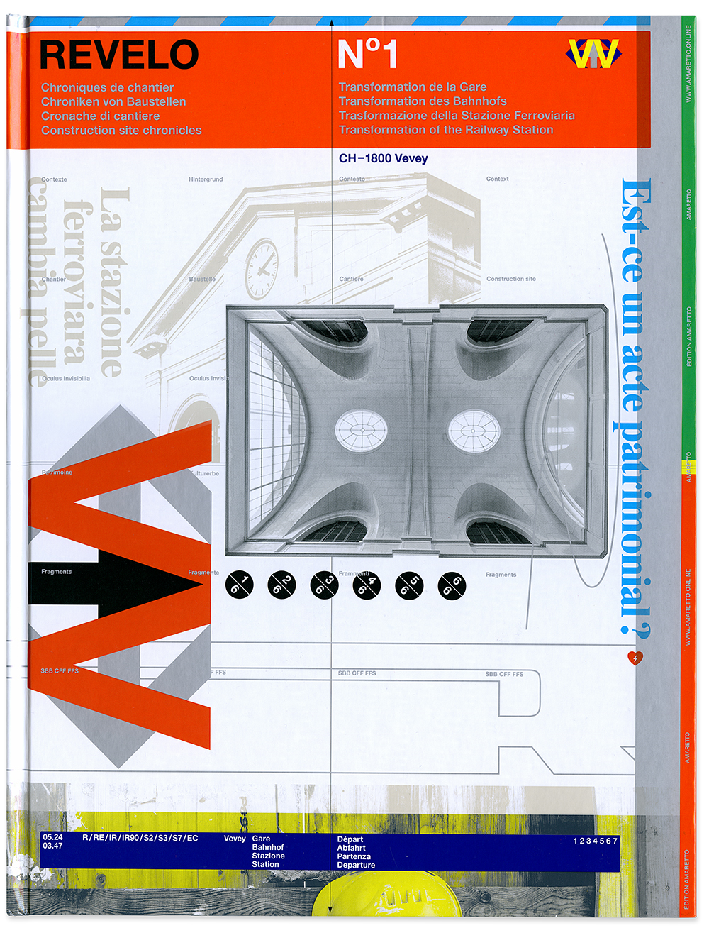 REVELO – to unveil, to lay bare in Latin – proposes an immersion on the field of a building site by developing a collaborative process which aims to valorize its actors and their works. Through various chronicles, the contributors of this edition present a singular vision of the place. This first issue, Transformation of the Railway Station CH – 1800 Vevey, interrogates the multiple uses of this kind of public building. Between documentation, historical research, patrimonial importance, technical details, local visions, artistic acts, anecdotes and fictions, the content extends over 6 thematic journals gathered in an exclusive work.